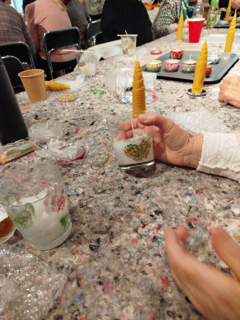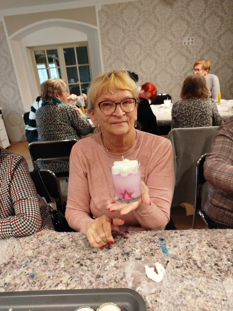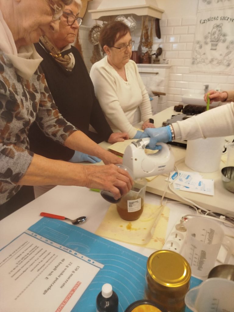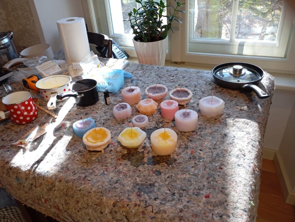 Dzieje się w pałacowej kuchni. Wosk, parafina w rondlach. Ampułki z naturalnymi zapachami. Czuć zbliżające się święta. A my już mamy drobne upominki własnoręcznie wykonane. Niestety to już ostatnie warsztaty w Lewkowie dofinansowane ze środków PFRON będących w dyspozycji Samorządu Województwa Wielkopolskiego.