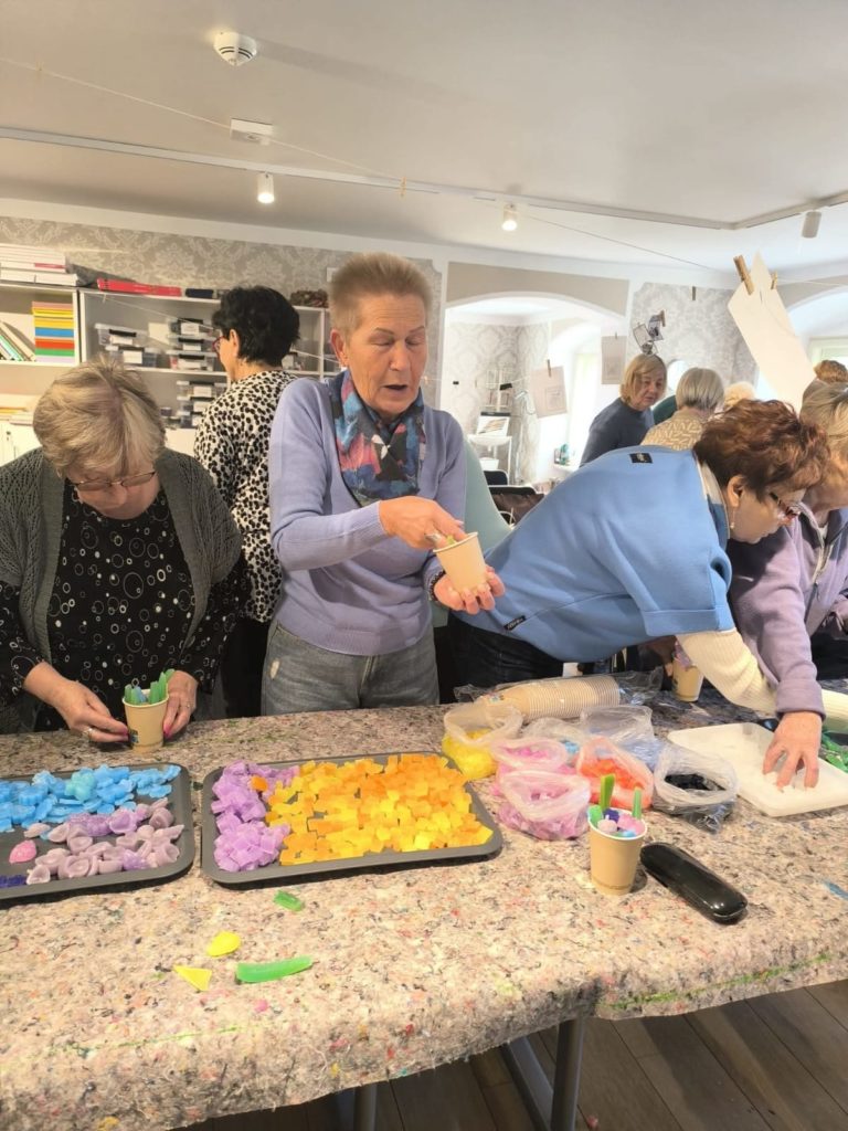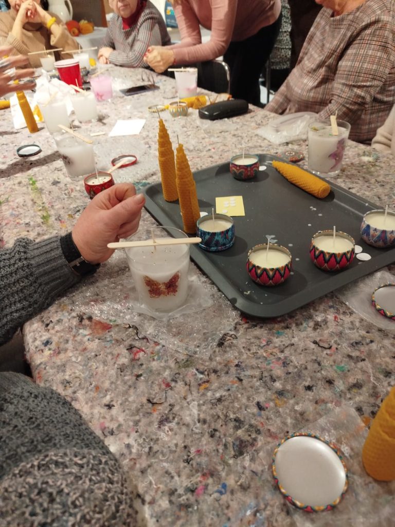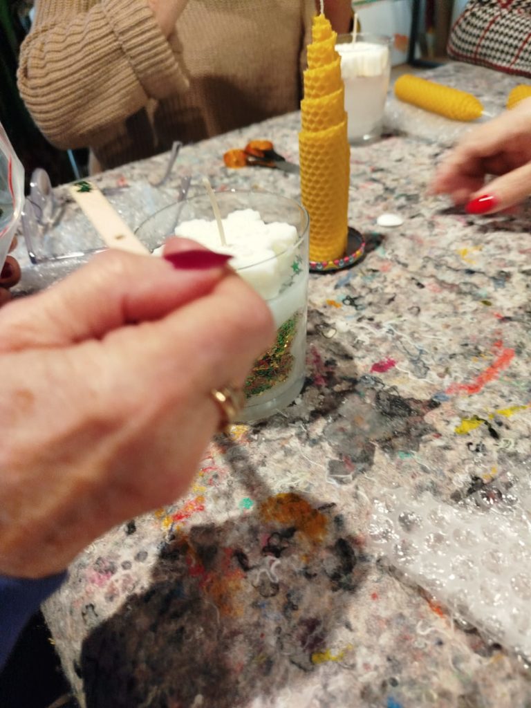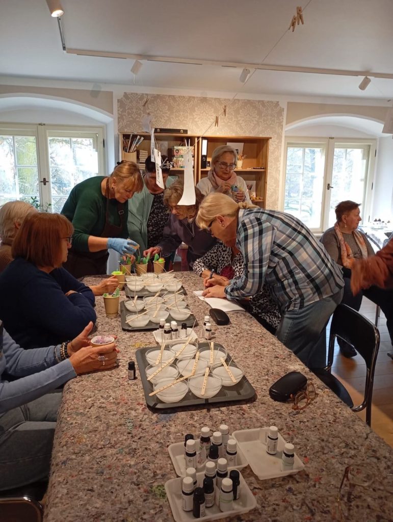 Dzieje się w pałacowej kuchni. Wosk, parafina w rondlach. Ampułki z naturalnymi zapachami. Czuć zbliżające się święta. A my już mamy drobne upominki własnoręcznie wykonane. Niestety to już ostatnie warsztaty w Lewkowie dofinansowane ze środków PFRON będących w dyspozycji Samorządu Województwa Wielkopolskiego.