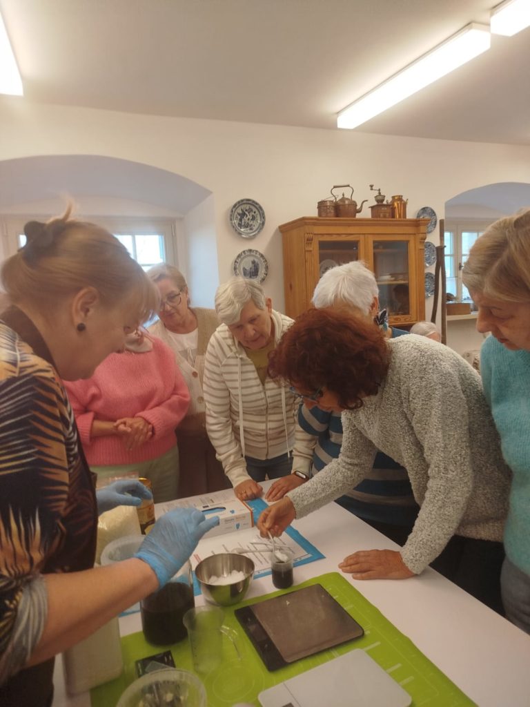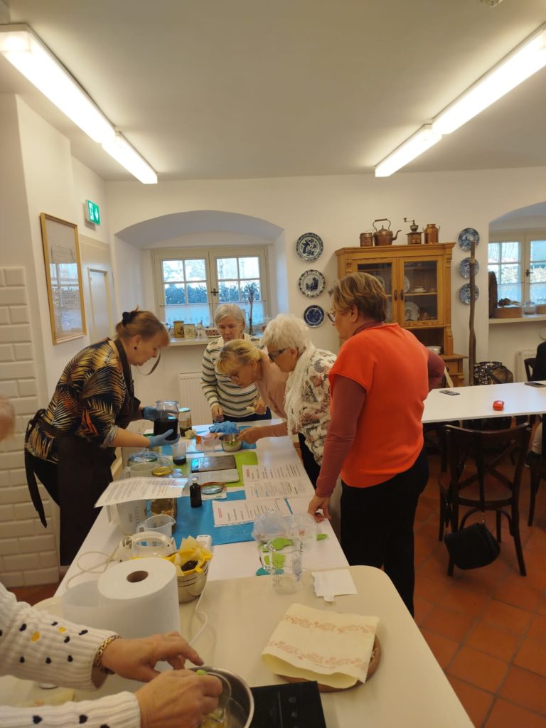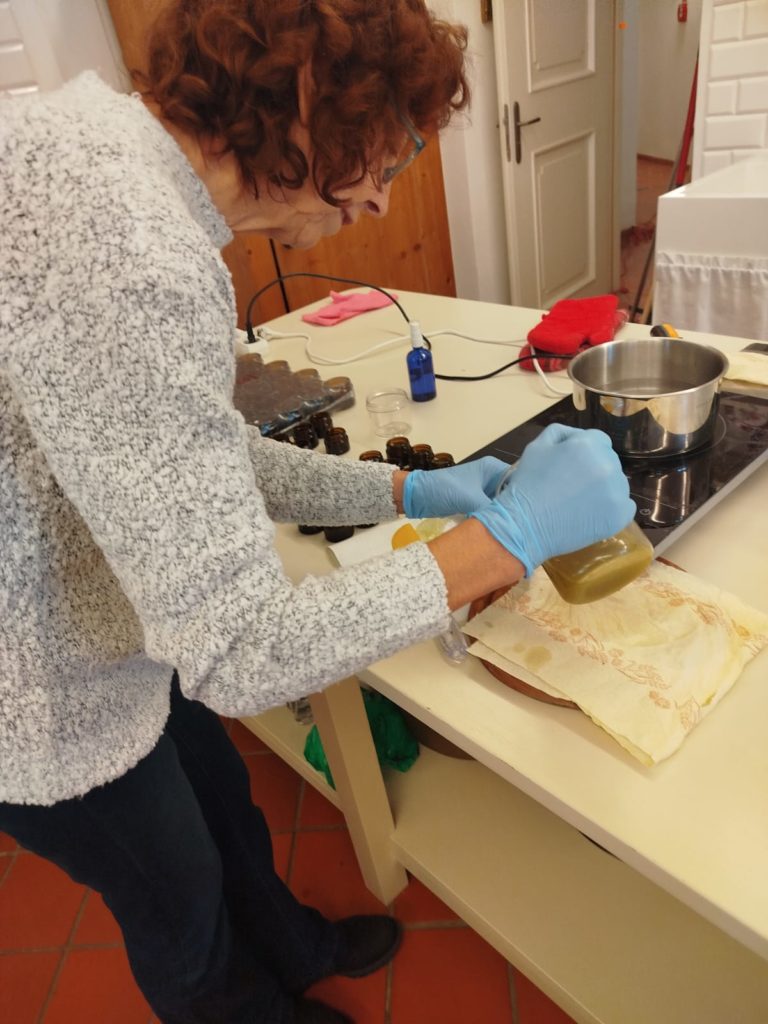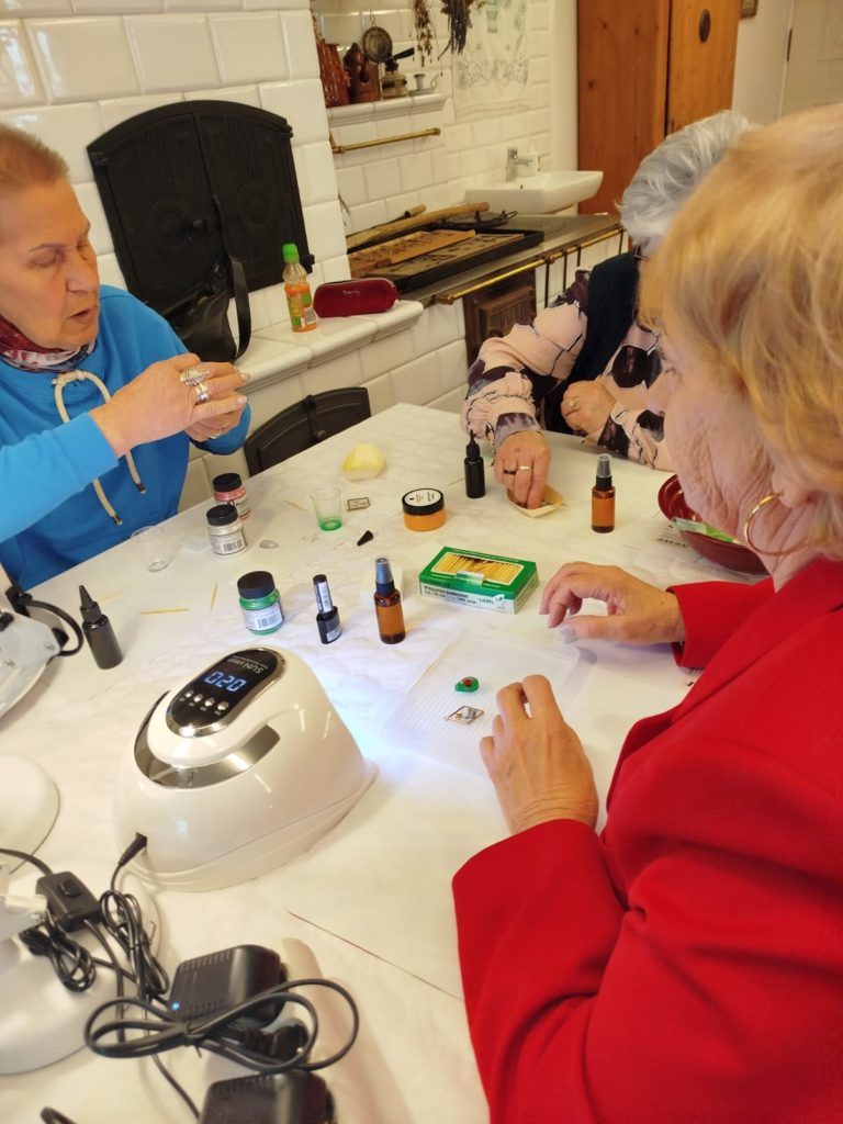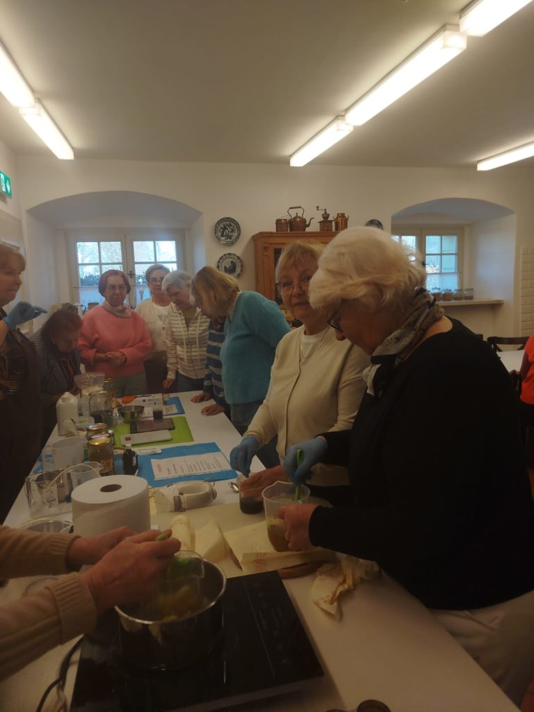 Tematem były „maści wszelakie”, wśród nich nagietkowa, żywokostowa oraz świerkowa. Przy aromatycznej świerkowej herbatce wysłuchałyśmy opowieści o znaczeniu ziół i możliwościach ich wykorzystania.